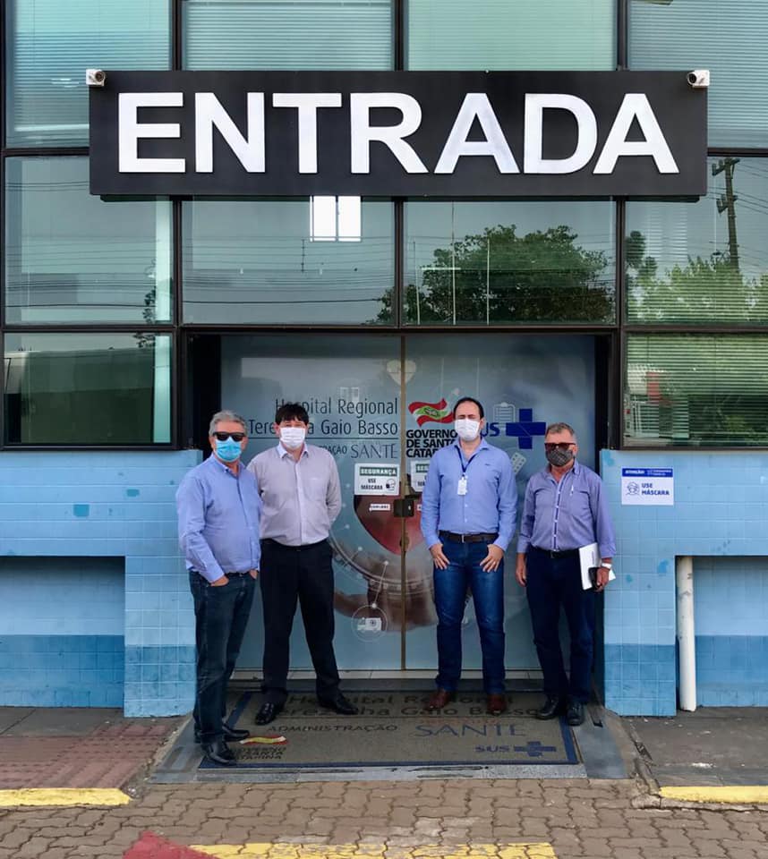 O diretor executivo da Federação dos Hospitais de Santa Catarina (FEHOESC), Braz Vieira, acompanhado pelo diretor tesoureiro da FEHOESC e Instituto Santé, Canísio Isidoro Winkelmann, visitaram nesta terça-feira, 13 de outubro, hospitais que estão sob gestão do Instituto Santé, na região do Extremo Oeste de Santa Catarina. São eles: Hospital Sagrada Família de Itapiranga, Hospital Regional Terezinha Gaio Basso de São Miguel do Oeste e Hospital de Guaraciaba.