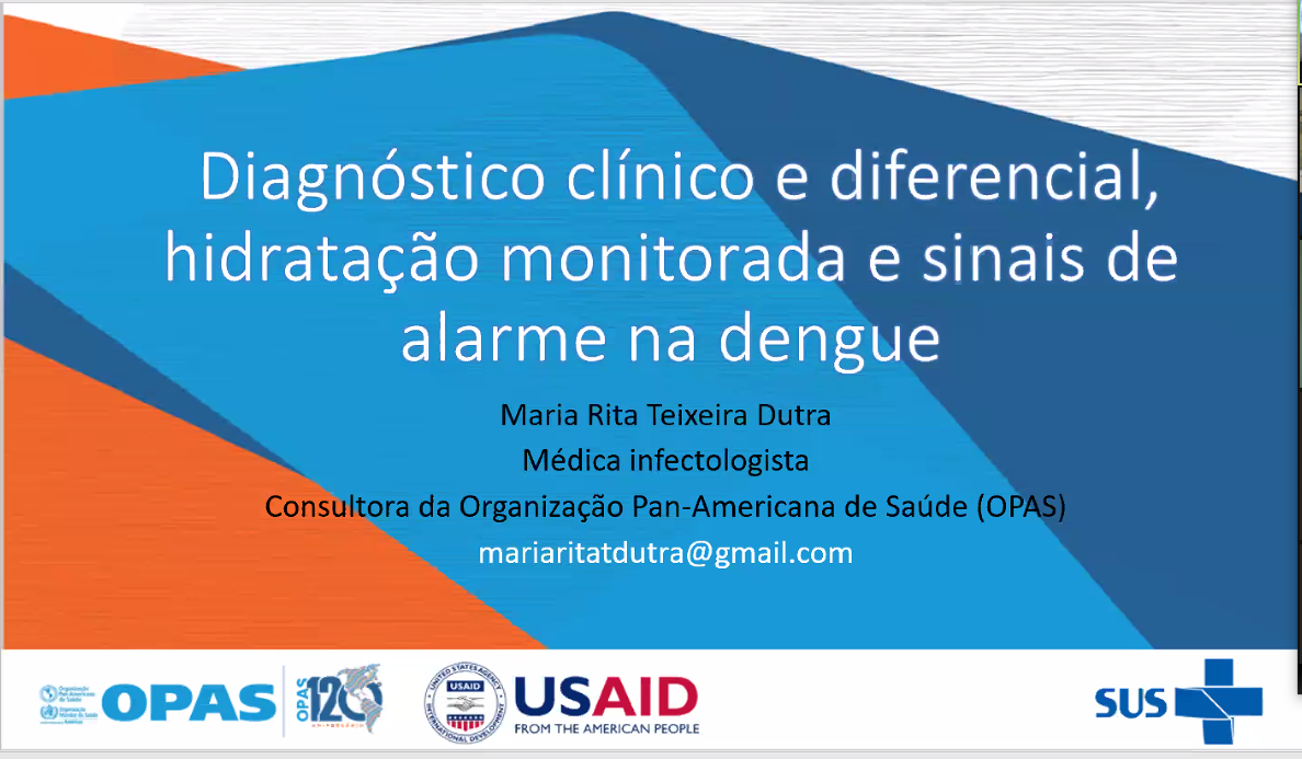 O estado está em alerta em função do aumento do número de casos da doença, principalmente nas regiões do Meio Oeste, Alto Uruguai e Oeste Catarinense. A médica infectologista, consultora da Organização Pan-Americana de Saúde (OPAS), Maria Rita Teixeira Dutra, destacou em sua apresentação, detalhes sobre diagnóstico clínico e diferencial, hidratação monitorada e sinais de alarme de dengue.