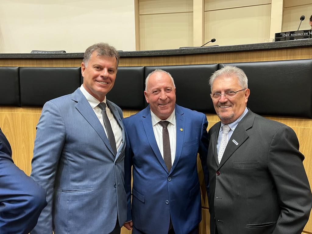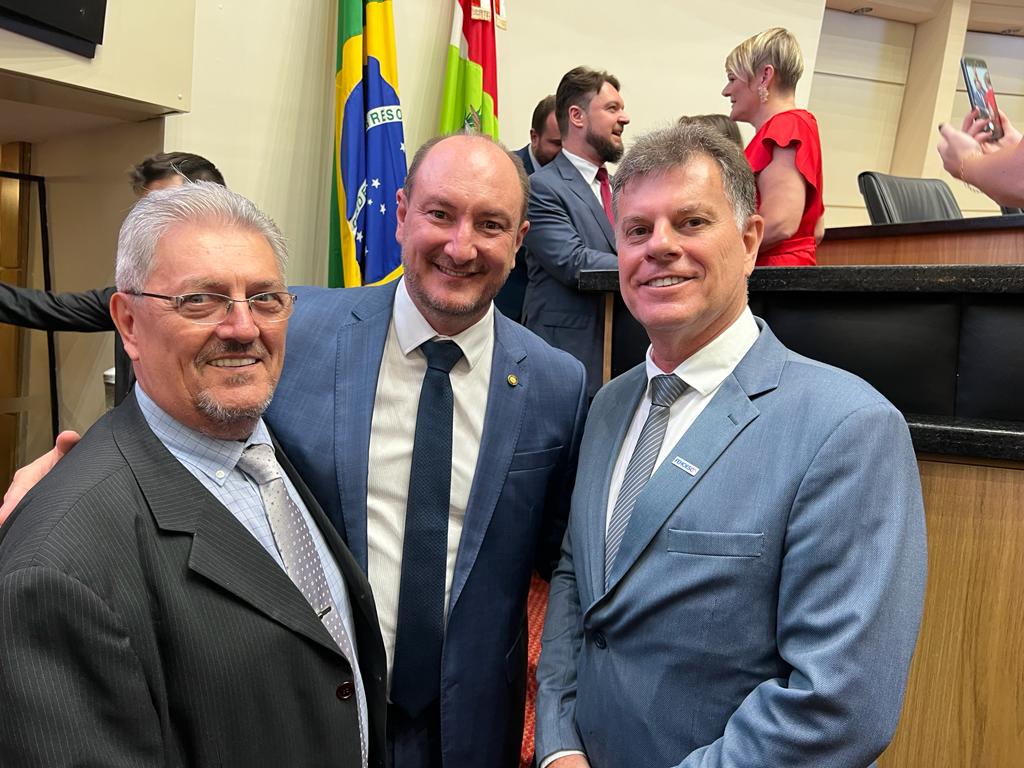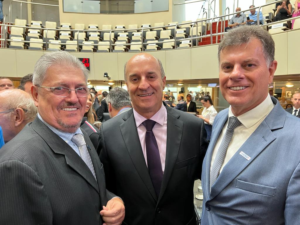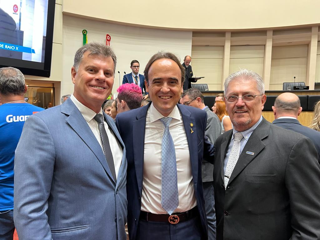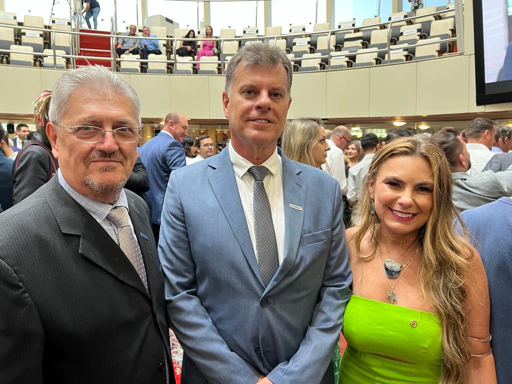 O presidente da Federação dos Hospitais e Estabelecimentos de Serviços de Saúde de SC, Giovani Nascimento, o diretor executivo Braz Vieira e a assessora jurídica, Dra. Francieli Santos, representaram a entidade nesta quarta-feira, 01 de fevereiro, na posse dos 40 deputados estaduais eleitos no pleito de outubro do ano passado.