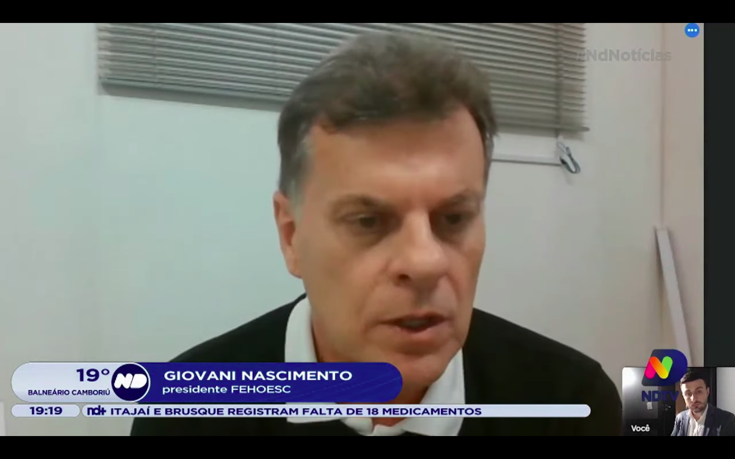 Eduardo Silva2022-06-09T12:45:17+00:00Devido a falta de leitos de UTI, o governo de Santa Catarina ativa a sala de situação. A superlotação é resultado do aumento de casos de doenças respiratórias. O presidente da FEHOESC, Giovani Nascimento, concedeu entrevista ao ND Notícias sobre o tema. Confira: https://ndmais.com.br/saude/governo-catarinense-ativa-sala-de-situacao-devido-a-falta-de-leitos/