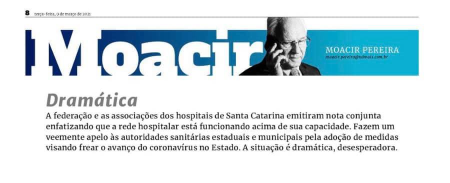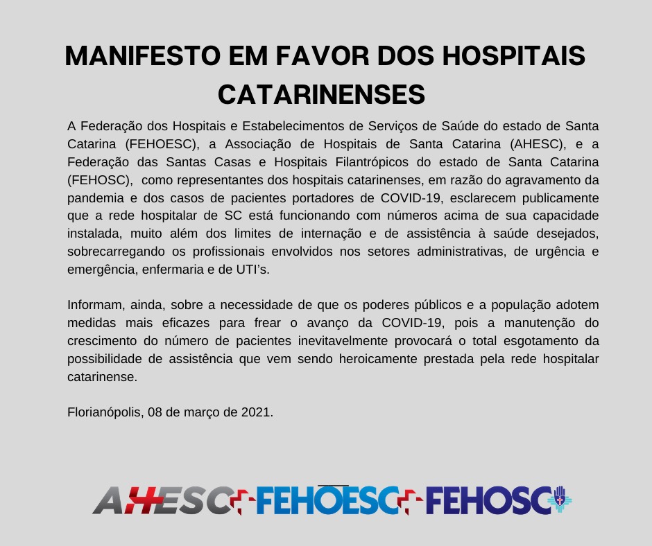 Eduardo Silva2021-03-19T14:38:35+00:00A Federação dos Hospitais de Santa Catarina tem monitorado o estoque de insumos, incluindo oxigênios. Os hospitais da região do Alto Vale do Itajaí registram um aumento de mais de 50% no uso desses equipamentos. O presidente da FEHOESC, Giovani Nascimento, concedeu entrevista ao Grupo de Comunicação Difusora: https://www.gcd.com.br/2021/03/19/consumo-de-oxigenio-aumenta-mais-de-50-em-utis-de-hospitais-da-regiao/