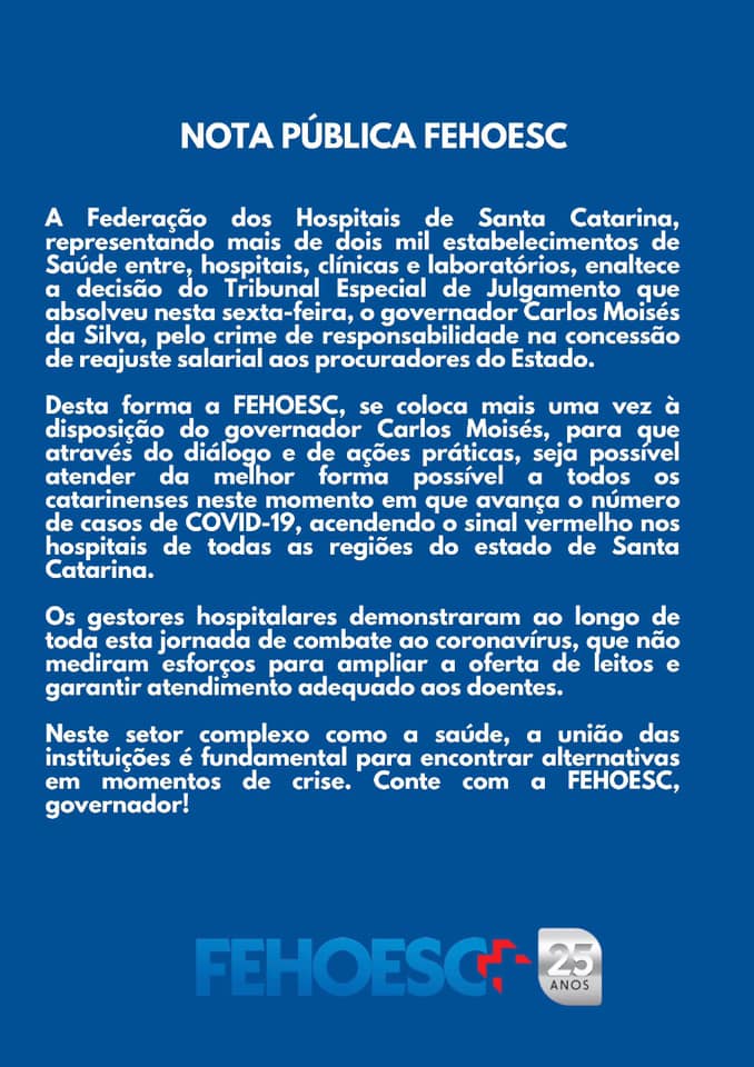 Eduardo Silva2020-12-02T17:28:51+00:0001/12/2020 - Covid-19: aumento no número de casos preocupa e governo estuda novas medidas restritivas http://www.fehoesc.com.br/2020/12/01/covid-19-aumento-no-numero-de-casos-preocupa-e-governo-estuda-novas-medidas-restritivas/?fbclid=IwAR2w6va59FnlnE3n8ZVx-sCT3Mt1bYz8Xwv8GUcYTAo1nEa95xziSPZK3y8 01/12/2020 - Autoridades debatem urgência de ampliação de leitos na Grande Florianópolis no combate à Covid-19 http://www.fehoesc.com.br/2020/12/01/autoridades-debatem-urgencia-de-ampliacao-de-leitos-na-grande-florianopolis-no-combate-a-covid-19/?fbclid=IwAR0m1LjEuQA6lL-1dsMtCwGulo23Ivl84oGvY53JV6NHXcSsOePZds1sW68 28/11/2020 - Governador reforça medidas junto aos hospitais filantrópicos para combater o avanço da Covid-19 http://www.fehoesc.com.br/2020/11/28/governador-reforca-medidas-junto-aos-hospitais-filantropicos-para-combater-o-avanco-da-covid-19/?fbclid=IwAR33DHIbKQzm2Nz4N4M2b5RAcXMf4MMicoVWbPKVV1HBdYzWNkyA39hGT6Q 27/11/2020 - NOTA PÚBLICA FEHOESC http://www.fehoesc.com.br/2020/11/28/nota-publica-fehoesc/ [...]