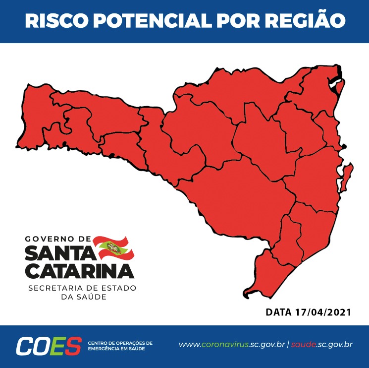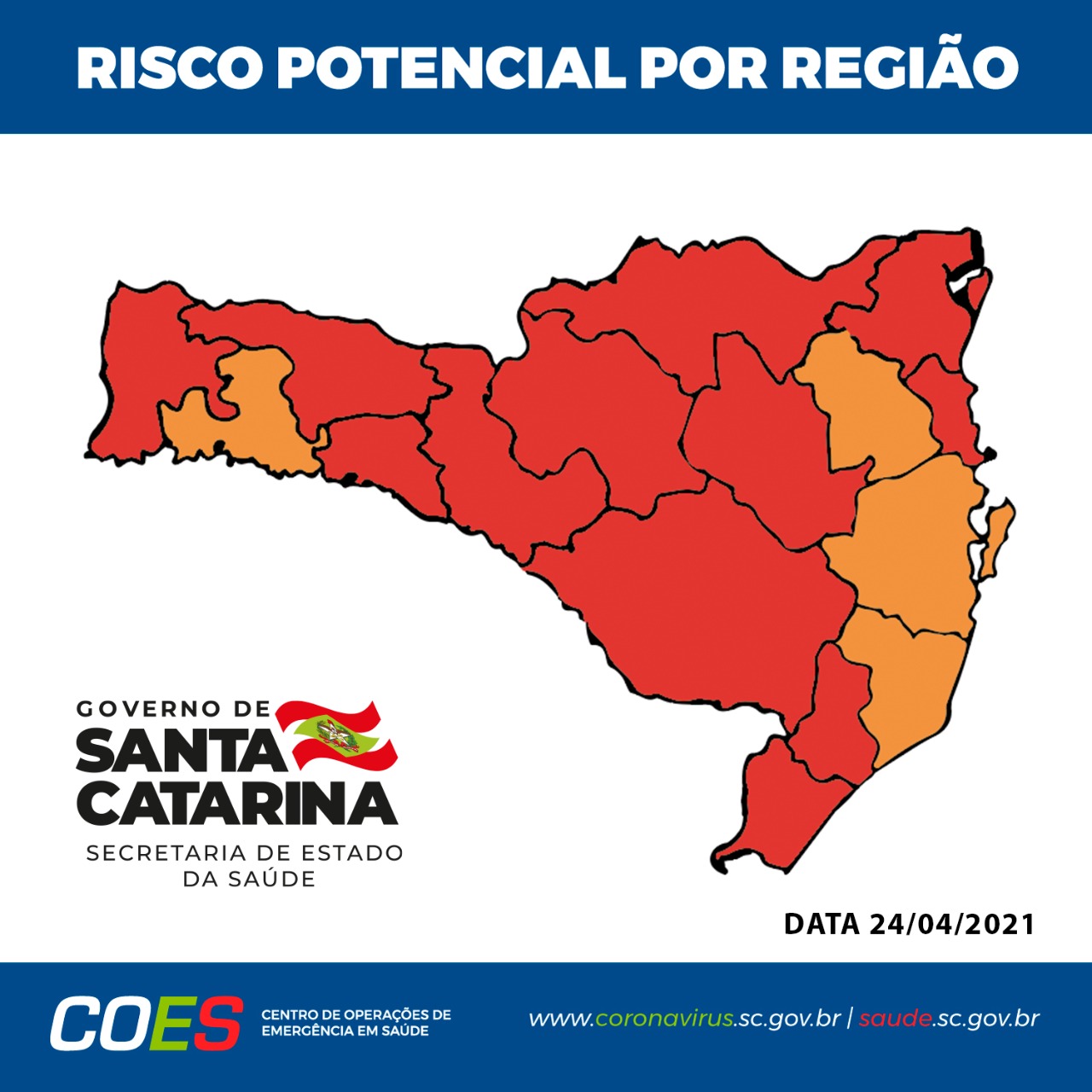 Eduardo Silva2021-04-26T00:40:06+00:00A Matriz de Risco Potencial divulgada pelo Governo de Santa Catarina e Secretaria de Estado da Saúde (SES) aponta que houve uma melhoria de classificação em quatro das 16 regiões avaliadas. Grande Florianópolis, Laguna, Médio Vale do Itajaí e Oeste foram reclassificados para o nível grave (cor laranja). A última matriz, divulgada no dia 17, [...]